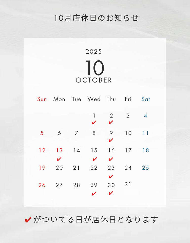 10月1日(水)・2日(木)・9日(木)・13日(月祝)・15日(水)・16日(木)・23日(木)・29日(水)・30日(木)