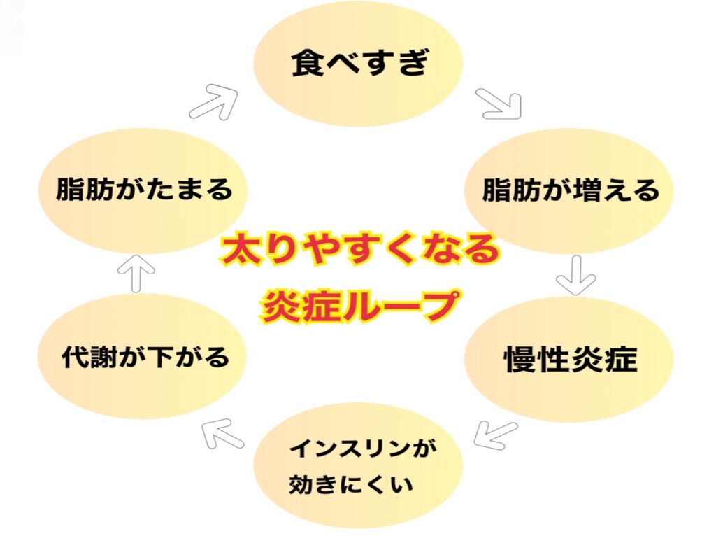 痩せれないのは、『太りやすく炎症ループ』にハマってるかもしれないです。